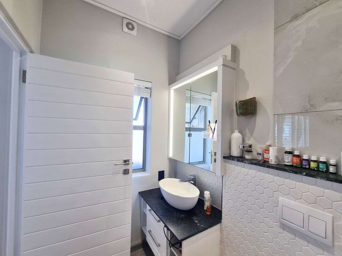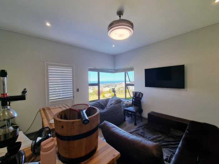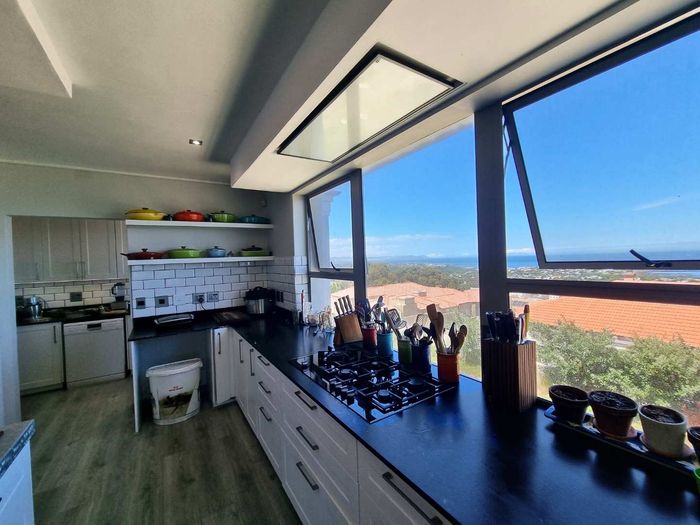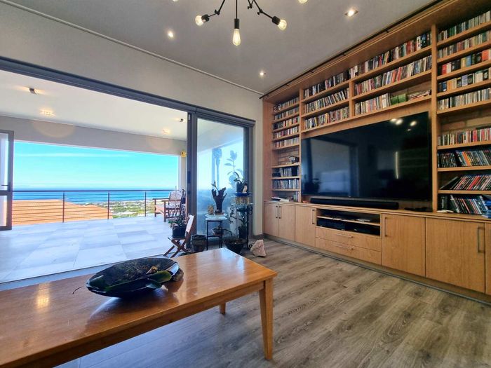 Entertain effortlessly with 180-degree sea and mountain views in Onrus River's exclusive Berghof Estate, featuring a chef's kitchen and entertainers' patio with braai. Four bedrooms, four bathrooms, double garage.