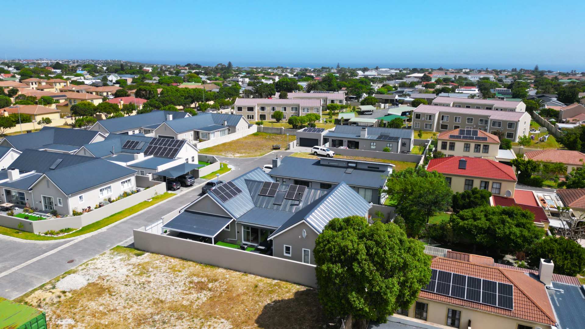 Three generously sized bedrooms provide peaceful retreats, each fitted with whisper-quiet ceiling fans for year-round comfort. The main bedroom offers the luxury of a private en-suite bathroom, while a second full bathroom serves the rest of the home. Natural light bathes every living space, creating a warm, welcoming ambiance throughout. Embrace sustainable coastal living with a comprehensive solar solution that includes a 5kW inverter system, solar panels, and a solar geyser, significantly reducing your energy costs while treading lightly on the environment. This home is truly future-ready.