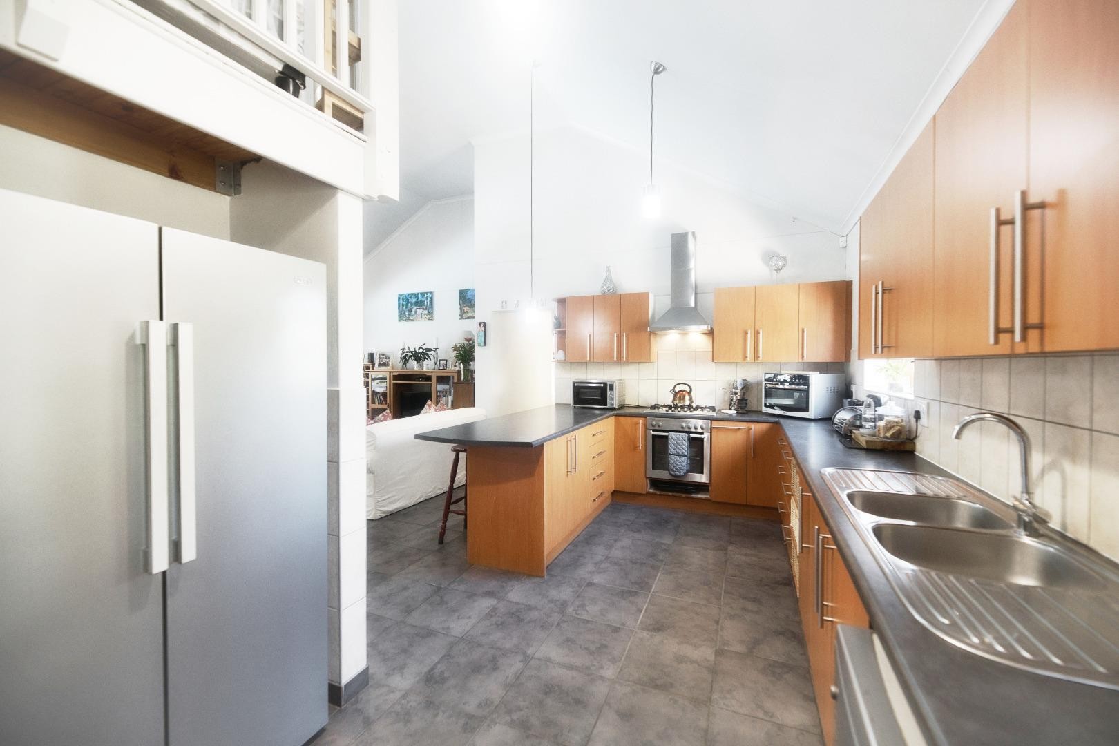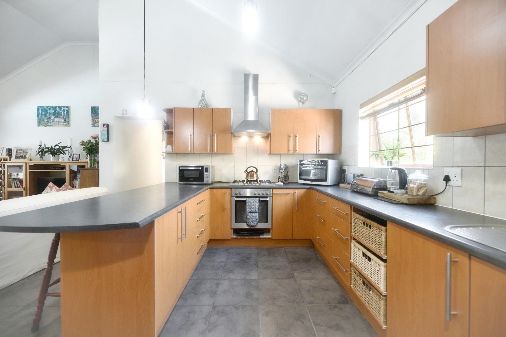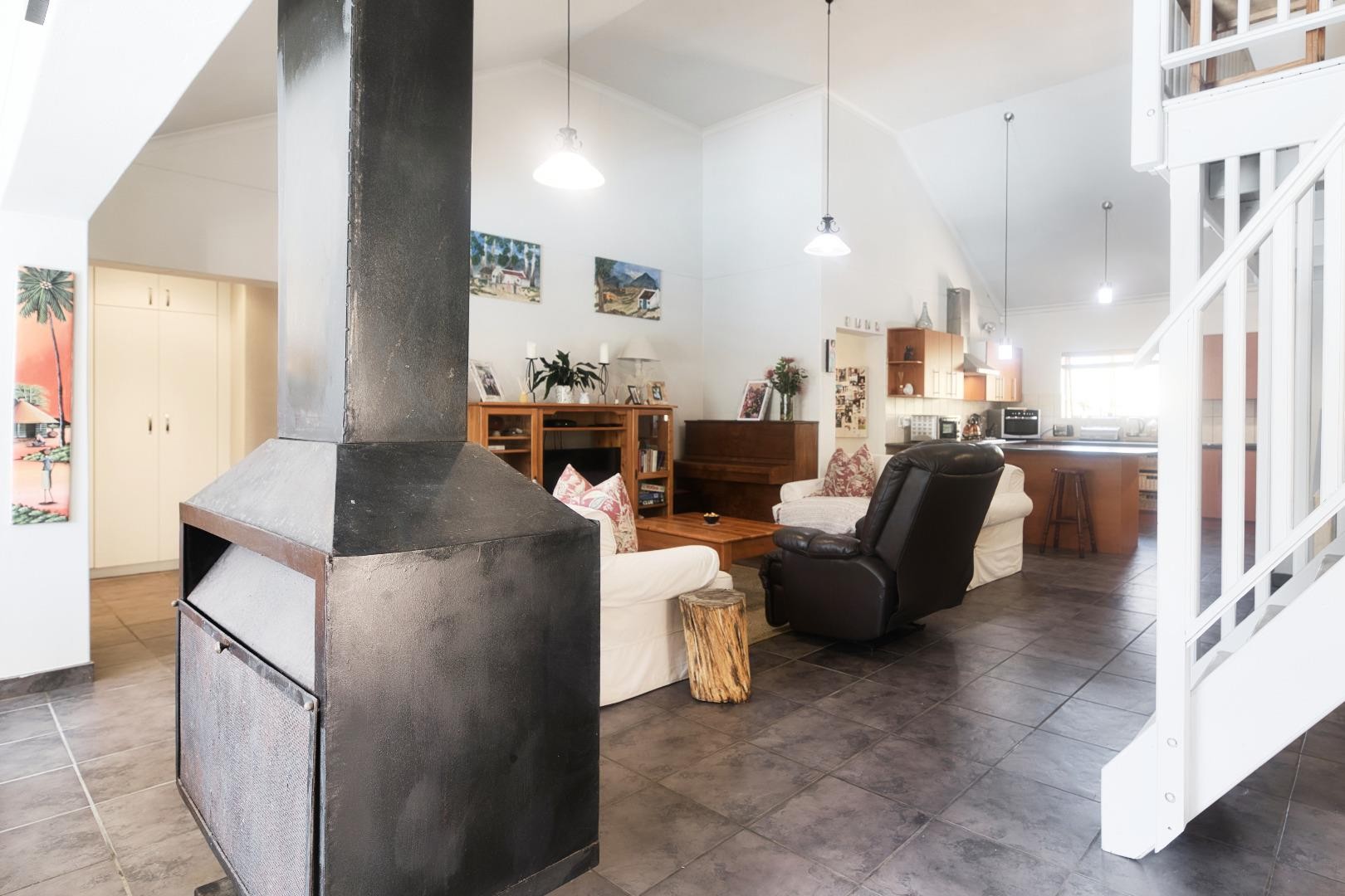 Step inside to find a home that masterfully balances social living with private sanctuary. The open-plan layout flows effortlessly from a well-appointed kitchen through inviting living spaces into a dedicated indoor braai room—perfect for year-round entertaining. Above, a dramatic mezzanine loft nestled beneath soaring chapel-style ceilings creates an intimate retreat that remains connected to the heart of the home, ideal as a home office, creative studio, or reading nook.