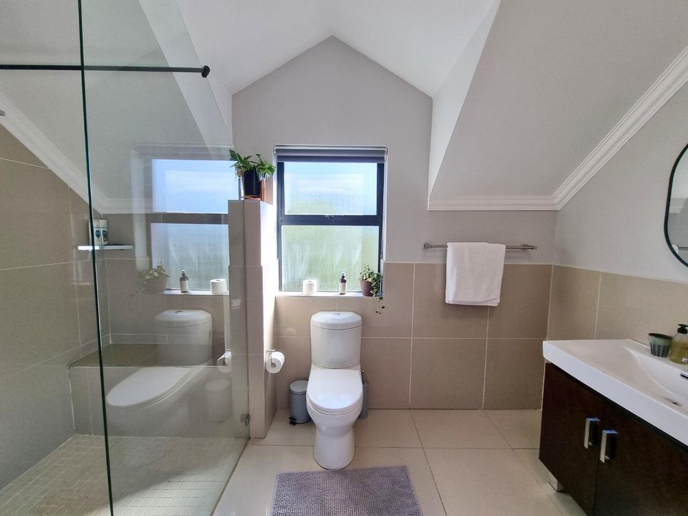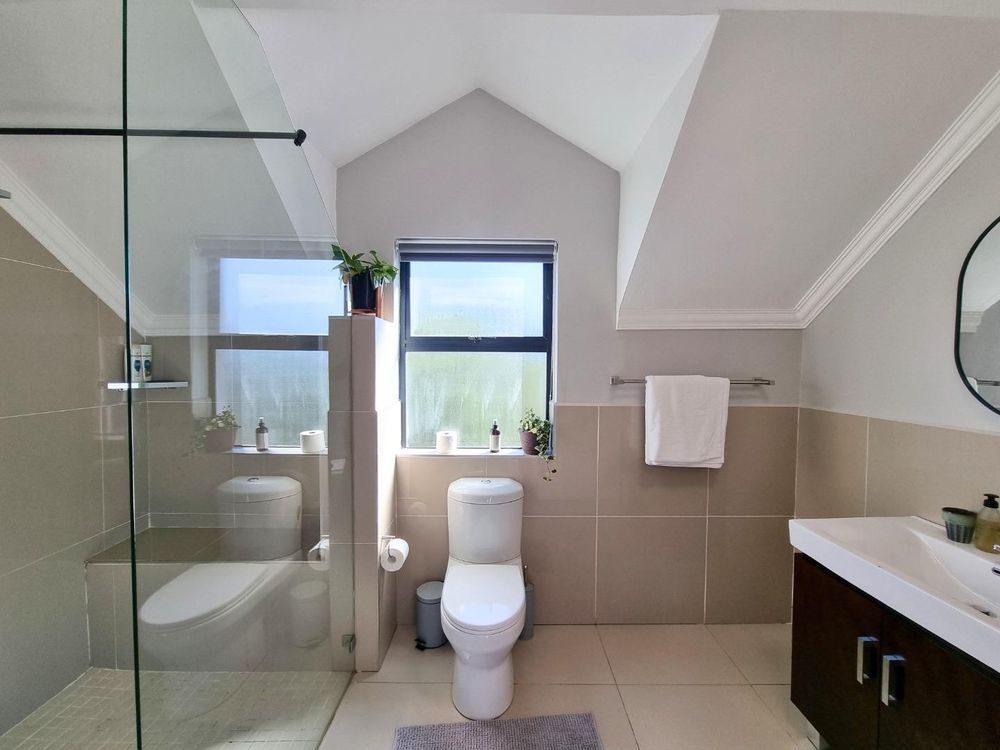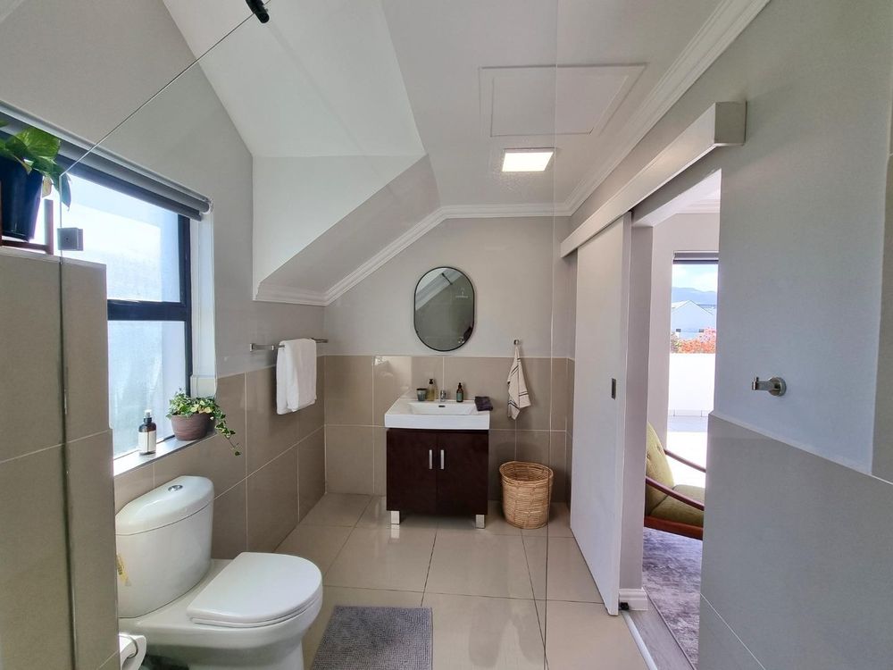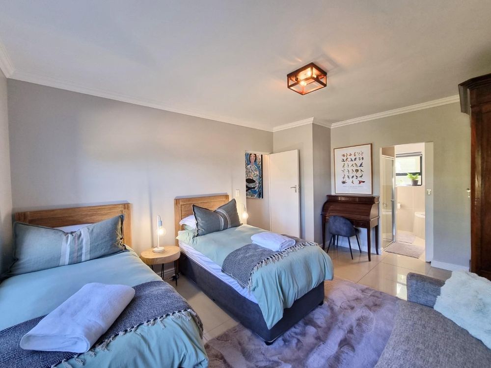 The accommodation offers luxurious comfort throughout. The ground floor master suite is generously proportioned with a full ensuite bathroom and clever under-stair storage solutions for optimal organization. The upper level haven serves as a true sanctuary, featuring built-in wardrobes and a spa-like ensuite with premium fixtures. The crowning glory is the private balcony offering breathtaking panoramic views of the majestic Kleinriver Mountain Range and sparkling sea vistas beyond, creating an entertainer's paradise perfect for morning coffee or evening relaxation.