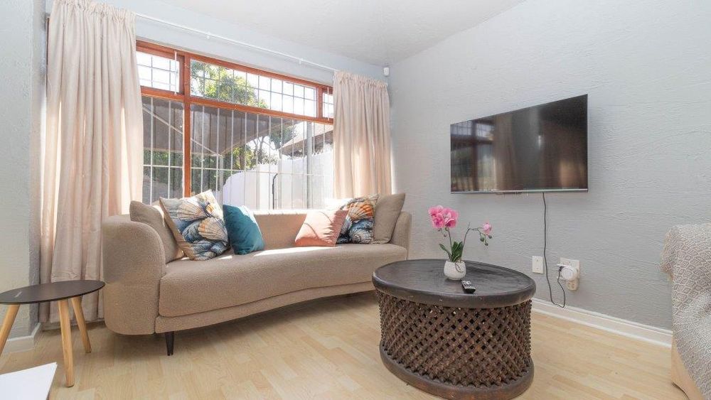 Outdoor living is a highlight, with a private swimming pool, a charming lapa, and a built-in braai area perfect for entertaining. The lush, irrigated garden and patio create a serene retreat for those beautiful sunset evenings, while ample parking for seven vehicles and additional storage facilities add practicality. Security is paramount, with 24-hour security, an access gate, and an intercom system, ensuring peace of mind. Fibre connectivity is also available.